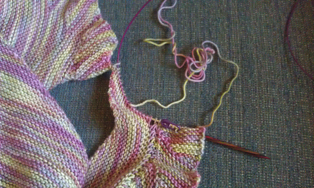 I'm still slowly striping my way through the Tour-de-Sock pattern from the last round. I was nearly finished with it last week but started the band of colorwork on the foot too late so it was all the way down near the toe and I hated it, so I frogged back. Nothing like making the sock foot slog last twice as long! It was worth it, though.
